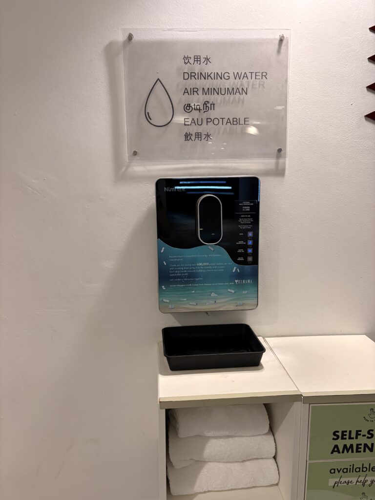 シンガポールのホテルにはロビーや各階、動物園などにこのようなフリーの水がおいてあります